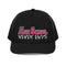 Available in two sizes with an elastic stretch band, this High School Never Ends hat is a sure winner in comfort! It has an athletic shape with a curved visor.